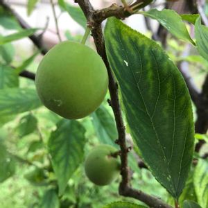 初収穫の家庭果樹 梅 露茜 紅い梅酒が作れるというので、昨年から育ててます。恐らくまだ実を付けるべきではなくて💦木を育てるべきだと思うけど、今年10個実り、7個収穫。触るとポトンと落ちるまで待ちました。真っ赤では無いけど😅 日本スモモと梅の交配によって生まれた梅らしくて、開花期が遅くて、結実が難しいとか?!そこで今年お迎えしたのが、生でも食べられる杏ーサニーコット。別名お日様コット。こちらも糖度が高く、黄色く大きな杏がなるみたいなのでこちらもジャムや杏酒にする日が楽しみ💕 この2本で沢山の収穫を目指します♪ まだカーポートの下で鉢植えなのですが、安定したら畑に植えようと思っています😊