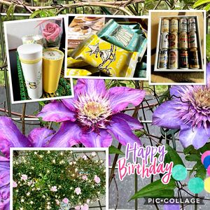 きょうは私のバースデー🎂🎈 家のクレマチス雨の中でパチリ ビールの飲み比べも嬉しかったし 鉢植えのミニ薔薇 マイボトルも明日から仕事に持って行きます どれも嬉しいプレゼントありがとね🫰🏻➰💕歳のこと考えると嫌だけど嬉しい誕生日
