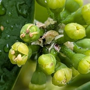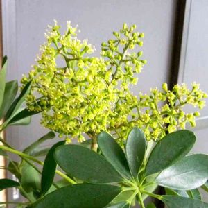 香港カポック ウコギ科 シェフレラ属 昨年3月に枝が込み入ってたので、バチバチ剪定してスッキリさせました🍀。 頂部のみそのままにしていたので、花芽が付いたようです。 先日から開花が始まりました。 このまま秋まで実のらせ、タネを採ってみようと思います。
