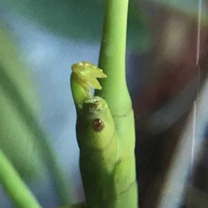 ホンコンカポック ウコギ科 シェフレラ属 とても長い間 うちの子になっています🍀 最長老は51年目の ノダフジ、次いで47年目の クンシラン、3番手がこの子で44年目。 今年は、前年にたくさんの枝を剪定したので、頂部の1コだけにツボミが付き、近いうちに咲くでしょう。