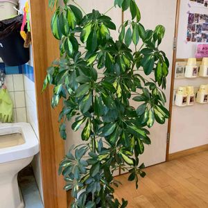 ホンコンカポックの植え替え 41年の長きにわたり わが家の玄関を見守っています。とても良い子で、11年もの長きにわたり植え替えを静かに待っていました。 水はけを良くし、新しい培養土を入れてやりました☘️ 根を傷めたので、花芽のついた枝も落とし、さっぱりさせました。 この子は、古典的でフイリでもありませんが辛抱強い自慢の子です🥰