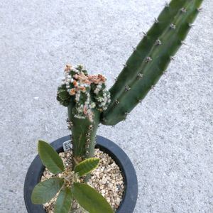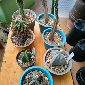 接ぎ木🌵紅籠 の台木🌵の袖ヶ浦だけデカくなる。 2枚目、で✂️→袖ヶ浦🌵挿し木鉢へ。 これで✂️2年連続の挿し木 3枚目〜一鉢足りない?😔と気づいて探した恵比寿笑い10号 これだけ🌱目覚めず☀直射の当たらない場所に置いて見守るハズが存在を忘れていた😓 で、よく見るとわずかに新芽🌱の気配🙌 よかった〜😰 ☁☁☁