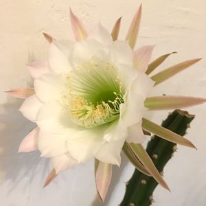 柱サボテンの袖ヶ浦が 今 咲いてます😺 台木で使われた後のをいただいてきたもの。 自分が小さいころ、母が 「今日多分 月下美人🌵が咲くよ!」と うきうきだったのに、 咲いた花を見て 私は「うわ〜 気持ち悪..」と いうような反応をしてしまったことを 思い出しました(口には出してないけれど) そんでもって 今ムスコから 同じ反応をされてるという...😀 いいねん、いいねん...