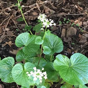 百合山葵(ユリワサビ) アブラナ科ワサビ属の多年草。山地の谷沿いや湧水地に生える。根生葉は卵円形または腎円形で、基部は心形、波状の鋸歯があり、無毛。茎葉は小型で互生する。花期は2~5月。長さ10~30㎝の花茎を株際から何本も出して、径約8㎜の白い十字花をまばらに咲かせる。長角果は長さ1~1.5㎝。 山菜として利用できる。春、ユリワサビの全草を摘み、生のまま、あるいはさっと茹でて、サラダ、酢の物、お浸しなど好みの料理で食べる。 名前は、冬に枯れた葉の基部がふくらみ、根茎の先を包む姿がユリの鱗茎(りんけい💬俗にいう球根)に似ることから『ユリ』がつく。『ワサビ』という言葉は、葉をもむとワサビのような香りを放つことによる。においだけでなく根元から出た大きな葉はワサビの葉に似ている。山葵(ワサビ)と同属で同じワサビ成分を含み、葉をかじると弱いからみがあるが、根茎は太くならず細く短い。ワサビの葉は光沢が強く細かい脈までよく目立つが、本種の葉は光沢が弱く細かい脈は目立たない。ちなみに、山葵(ワサビ)の名前は、山間地にあって葉が銭葵(ゼニアオイ)に似ることに由来し、平安時代の『本草和名』(ほんぞうわみょう💬日本最古の薬物辞典)等に記されている。呼び方のワサビは『和佐比』に由来するなど諸説ある。 出典『里山の植物 ハンドブック』『山に咲く花』『春の野草』『薬草の呟き』『野草の名前 春』『野菜・山菜ハンドブック』