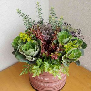 【葉牡丹1/5】 何もできなかった1年の締めくくりは、葉牡丹寄せ植えもろもろ。第一弾は、はっぱものだけで管理を楽に😀 コプロスマやミニ観葉も取り入れて。
