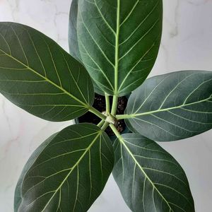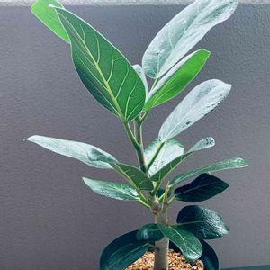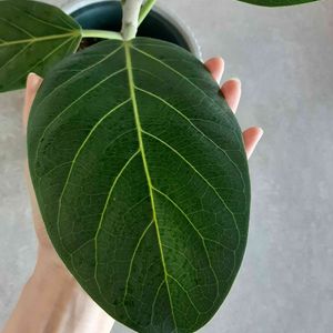 お迎えしたばかりのフィカス ベンガレンシス。 背丈は40cm程なのだけど、葉っぱは手のひらより大きいサイズ。 黄緑の葉脈が綺麗。 そして、葉の裏がもふもふでとっても手触りが良いのもお気に入りポイントです☺️