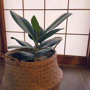 ゴムの木がほしくて小さい子を購入! ベンガレンシスと言う名前らしい🙄 大きくなったら曲がっていくのかな?? 部屋が寒すぎて植物たち心配😭💦