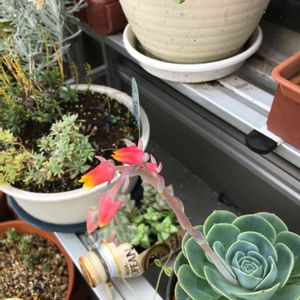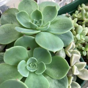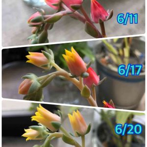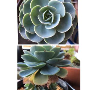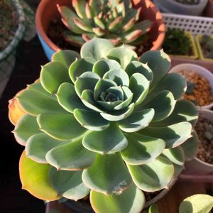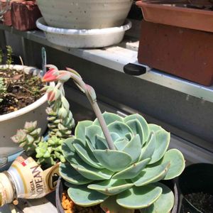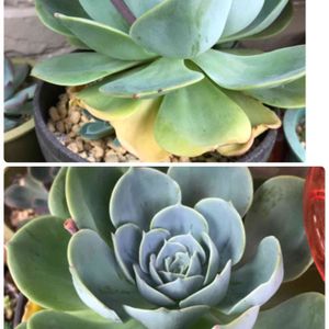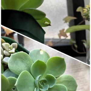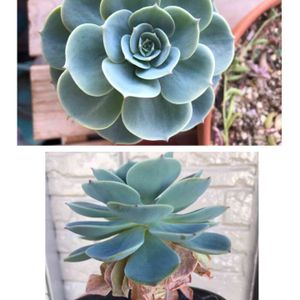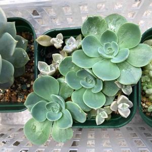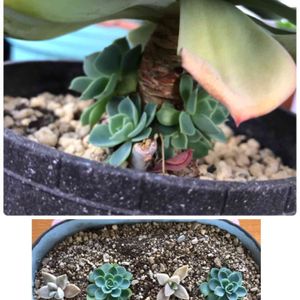 色づきはないけど子株は成長中。 はずした子株で憧れの七福神と朧月の寄せ植え。 まず2つずつで開始。