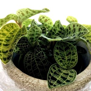 池袋西武で一目惚れしたジュエルオーキッド (¥3,300-)。葉脈がゴールドで、色のグラデーションから葉っぱが輝いて見える。美しい。