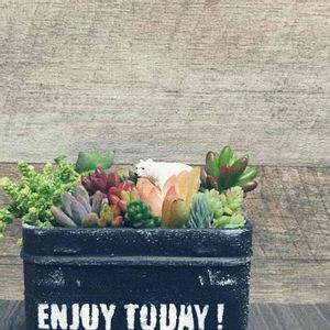 お友達にもらったデカリメイク缶とベラ♪ 寄せ植えました♪