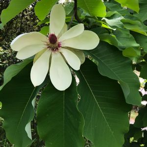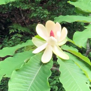 ホウノキに花が咲いて綺麗な緑の中で映えてました。 このホウの葉が🌿がホウバ焼きの料理に使われる葉です。 大きいですね。