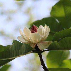 こんにちは😃 ホウノキの花咲きました 以前投稿した家の木は草だらけで近寄れず、近所の川にいいのが咲いていました 先に葉っぱが出てその後花が咲きました 最初に花芽だと思っていたのは葉っぱの柔らかい物かカバーの様な物でした。 失礼しました🙇♀️