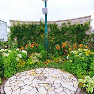 福島競馬場ローズガーデン(10) お手洗いの壁、とっても素敵な寄せ植えアートの世界! これなら待っているのが苦にならないですね☺️