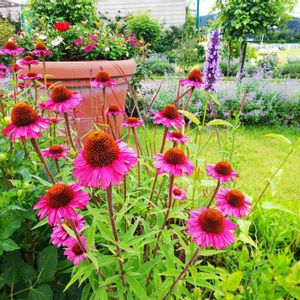 福島競馬場ローズガーデン④ 寄せ植えのエキナセア。 大きい!存在感がありました。