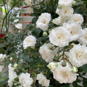 遅咲きで小輪の白い子咲きました🤍 仕立てはシュラブにもツルにも良さそう♬ なかなか強健らしいです (,,>ლ<,,)💦 No.61 Alba Meidiland 開花 5/10