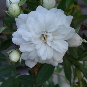 バラ・アルバメイディランド* 修景バラ 白い小輪の花が房になって 咲いています ほとんど手もかからずに 剪定でボリュームも調整するくらい 豪華な大輪もいいけど 小輪のバラがたくさん咲くのも 見事です✧︎◝︎(*´꒳`*)◜︎✧︎˖