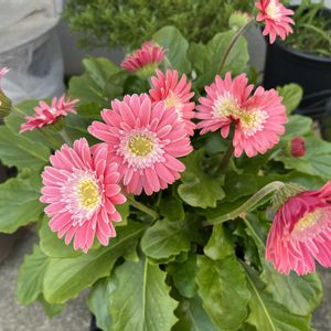 ガーベラ🌼 先月までに鉢のサイズアップが完了しました🫡 黄色のガルビネア・スイートバイブは購入時、葉っぱが5枚ほどの小さな苗でしたが、半年経ってしっかりとした株に成長しました。 最近は特に調子良い感じです😉 2枚目のピンクはタグ無しの子ですが、植え替えてから調子良くなりました。花色がとてもカワイイです。