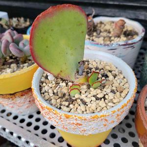 なかなか名前が判明しなかった子でしたが『ルシー』❤と教えて頂きました 花が咲いたあと植え替え・仕立て直しをして5ヵ月経過 その間に葉っぱが次々に枯れてしまい一枚だけになっちゃいました😖 おや新芽だ👀✴🌱🌱 生まれたてホヤホヤ♨️なのに、葉の縁がもう赤くなってる不思議ちゃん😲可愛い💘