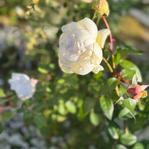 バラ ボレロ もう終わりに近づいていますが、なんだかこの枝だけビヨーンと力強く伸びていて、お花も「ん?別の品種かな?」と思うほど大輪でした😅 この枝だけ栄養状態か、お日様の当たり具合かが良かったらしいです😆✨✨✨ 午前中の日差しを浴びているバラは美しいですね〜💕