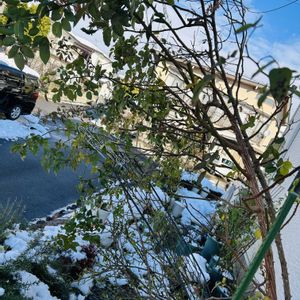 水曜日の夜、10時過ぎくらいからすごい風の音。外をみたら吹雪でした🥶 重たい雪が降り、翌朝外に出たら、つるバラが4本フェンスごと倒れてました😱😱 直す時間もなくそのまま放置… 今朝からお直し作業。泣く泣く伸びたつるバラの枝をバッサリ切ってフェンスを直して固定しました。 重たい雪と風にやられたのは初めて…昨シーズンの豪雪でも大丈夫だったのに初雪初日でこんなことに(╥ω╥`) もう倒れませんように😭 花瓶に挿したのは毎年ずーっと咲き続けるボレロさん。寒くなると蕾たくさんあってももう咲かないんですよね🥲 ボレロさんもバッサリ切りました