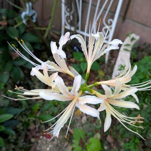おはようございます☀️🌱 1⃣我が家に1本しかないリコリス·アルビフローラが咲きました 2️⃣白いオシロイバナ清楚な感じが凄く好き 3️⃣挿し木のボレロ いつの間にか開花 4️⃣瀕死に近いかおりかざり、少し元気になったかのな❓