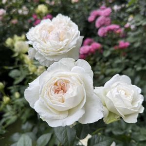 こんにちは~🙋 ①🌿💗しのぶれど😍咲きました~🤗 ②🌿🤍ボレロ😍 ③🌿🤍アイスバーグ😍 今日の小さな庭〜辺りは薔薇の香り🥰