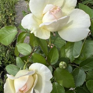 チャリティーローズ絆 一軍のピエールちゃんに 隠れるように ひっそり清楚に咲いてます 来年はもっと別の場所で 輝かせてあげたいなぁ 庭はバラ盛り♡しあわせ♡