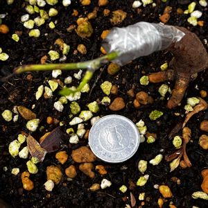 薔薇の接木「ボレロ」 2本継いで全滅かと思ってましたが、1株は芽が展開して来ました。 もう1株は沈黙してますが、少しだけ芽に色が出て来てます。 まだ生きてる模様🤔