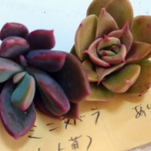 この子たちの名前を教えてほしいです(,,o̴̶̷᷄﹏o̴̶̷̥᷅,,) 1つは、カエデ祭り、もう1つがミニナントカ? 文字を普通に読むと、ミニヌベラ?そんなの検索しても無かったし💦 (ヤフオクで4つ落札したのでオマケに野うさぎと一緒に頂いた) グラプトベリア ミニヌベラ と教えて頂きました \(^o^)/