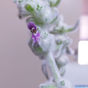 1ヶ月ほど前に切り花で買ったラムズイヤーにお花が咲いた〜!