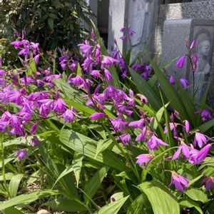 6/23㈪① 今日のお花 シラン 紫蘭 1️⃣青花紫蘭 2️⃣口紅紫蘭 名前の順序が逆になっていましたので直しました! ミンちゃんありがとうございます☺️ 3️⃣紫蘭…花筒が白い花があります 4️⃣シラン ⇧此処までは豪徳寺境内の紫蘭 5️⃣公園の紫蘭…全体が紫色です