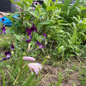 おはようございます☁️ 自然交配で2本目 可愛い紫蘭が咲いていました✌️ 中心部だけがピンクで可愛い♥️