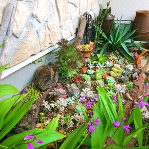 ずっと造りたかった地植えで多肉花壇 ✨なんとか完成🥺ドライガーデンもしたくて、サボテンたちも配置🌵