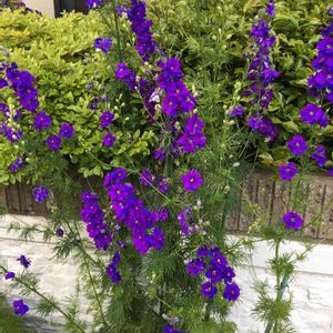 おはようございます✿*:・゚ ご近所の散歩道沿いの花壇 紫色の鮮やかなお花 千鳥草、ラークスパー🤔かな きれいでした