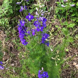 実家から引っこ抜いてきたチドリソウの開花💙 随分大きくなっていた苗だったから移植が苦手なチドリソウどうかなぁと思っていたけど👍️ 買って植えたチドリソウがいつもうまくいかないのでこの子にはこぼれダネで我が家に居着いて欲しいな~😊