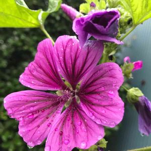 梅雨入りしました☔︎ 今年はチビちゃん 「マロー?」「コモ?」 葵ですがね?? *コモンマロウ 名前を教えて頂きました(*´-`)アリガトウ スッキリしました! ナント食材になるそうです🤗
