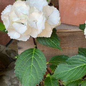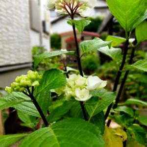 あじさい💕 小さな苗を買って 次の年から2年間 お花が1つしか咲きませんでしたが 今年は3つ蕾を付けてくれました 真っ白でとっても綺麗なんです💕