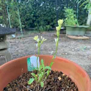 見切り品で枯れ枯れの ハーブが、いつの間にか 花を咲かせていた💐 ワイルドロケット