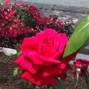 鉢植えのバラの本を買った時 表紙がクロード・モネさんでした。 しっかり咲いて暑さにも強く、 とてもたくましいバラさんです 💪✨🌹 なぜかいつも青いホースが写りこんでる🤣