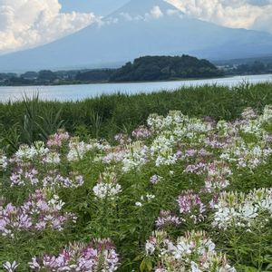 富士河口湖畔大石公園遊歩道へ ❶ クレオメ 風に蝶が舞うような美しい 花を咲かせることから セイヨウフウチョウソウとも 呼ばれています ❷ ハイビスカス アオイ科の低木、黄色の縁取りが 鮮やかなオレンジ色の一日花 仏花としてブッソウゲとも呼ばれ ています ❸ オニユリ ユリ科の多年草、クルンと反り返 った花姿でオレンジ色に斑点が 葉にムカゴをつけて次の世代へ 命を繋ぎます ❹ ❺ コキア ホウキソウとも呼ばれる雌雄同株 の一年草、ふんわりとした草姿が 可愛らしい、紅葉する頃が楽しみ ですね〜