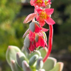 こんばんは。 多肉ベットのエケベリア達 こちらはやっと花芽が出てきた😅 陽が伸びて 夕方遅くまで 植物ごと出来るので 楽しいです😆