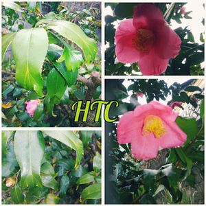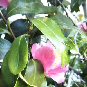 こんにちは〜🤗 昨年買った珍しい葉っぱの金魚葉椿🌺 葉っぱの先が金魚のしっぽ似🤗 今年も咲き始めた😃