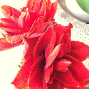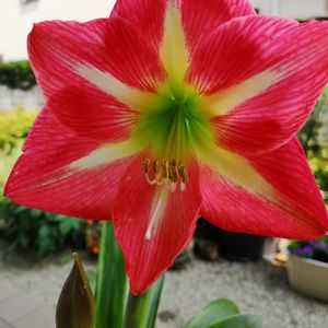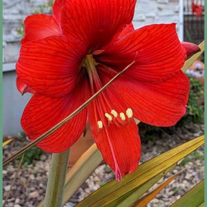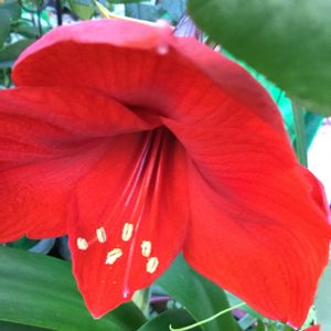 アマリリス❤️ 知人が交配した苗もらって、今年初めて咲きました こちらは、赤が強め🌼