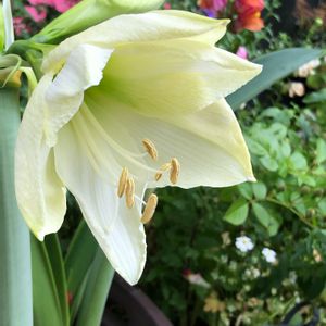 こんにちは😊 春に安売りしてた球根です💦 アマリリスの白が咲き始めました 赤のアマリリスはまだ蕾です