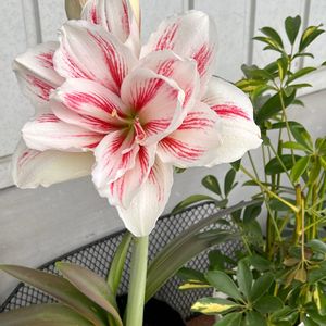 シロスジアマリリス 春咲きの豪華さとは違いスッキリ 葉にも花にもくっきりとした白いスジが美しい✨✨✨✨✨✨✨