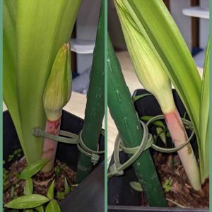 アマリリス❤️ この子遅れて咲いてます 🌿🌿 友人が、交配した苗もらって植えたら、3年で咲きました🌼