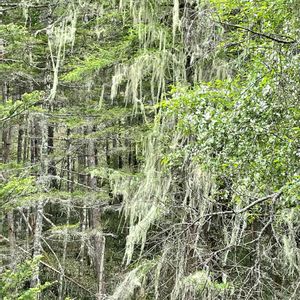 サルオガセ 霧藻とも言う。風に揺れていました。 高山で見たものより緑が濃いように思いました。