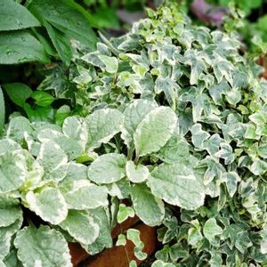 うちの斑入り葉たち*:゚+。.☆.+*✩⡱:゚ 上はヘデラ。 左が白雪姫で右がヘリックス ニューミニシルバー。 ミニシルバーは名前のとおり小さな葉っぱで姿も乱れず小さな寄せ植えにとても使いやすいデス。 真ん中左はアルテルナンテラ。新葉の時だけ白くなります。縮れた葉っぱも魅力的。 真ん中右は大好きなアラビス。 そろそろ葉っぱがピンクに染まりだす頃ですが今年はまだですね。 下は春にスィートチャリオットの足元で賑わってくれるシレネとアジュガピンクライトニング。今年も強剪定からじわじわ復活中。 頼もしい脇役たちです(*˘︶˘*).。.:*♡