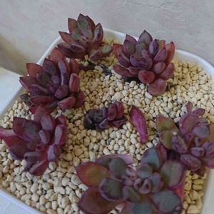 パープルドリーム グラプトベリア属 ブルービーンとエケベリアとの交配種らしい もっと紫色になるよね。 ぎゅうぎゅうの2鉢を、株分けしながら植え替えました。 たっぷり葉挿しも取れた😅冬にも強そうですよ。