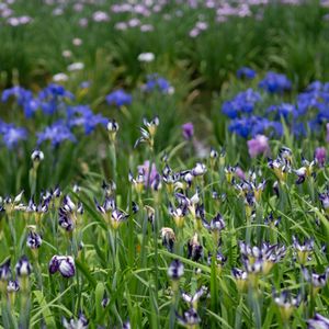 大阪城近くの城北公園花菖蒲園に行きました。 満開です。 1枚目 初めて見る品種。 近くで枯れてるんかなとささやいていましたが、枯れていません😅 名前は⁈